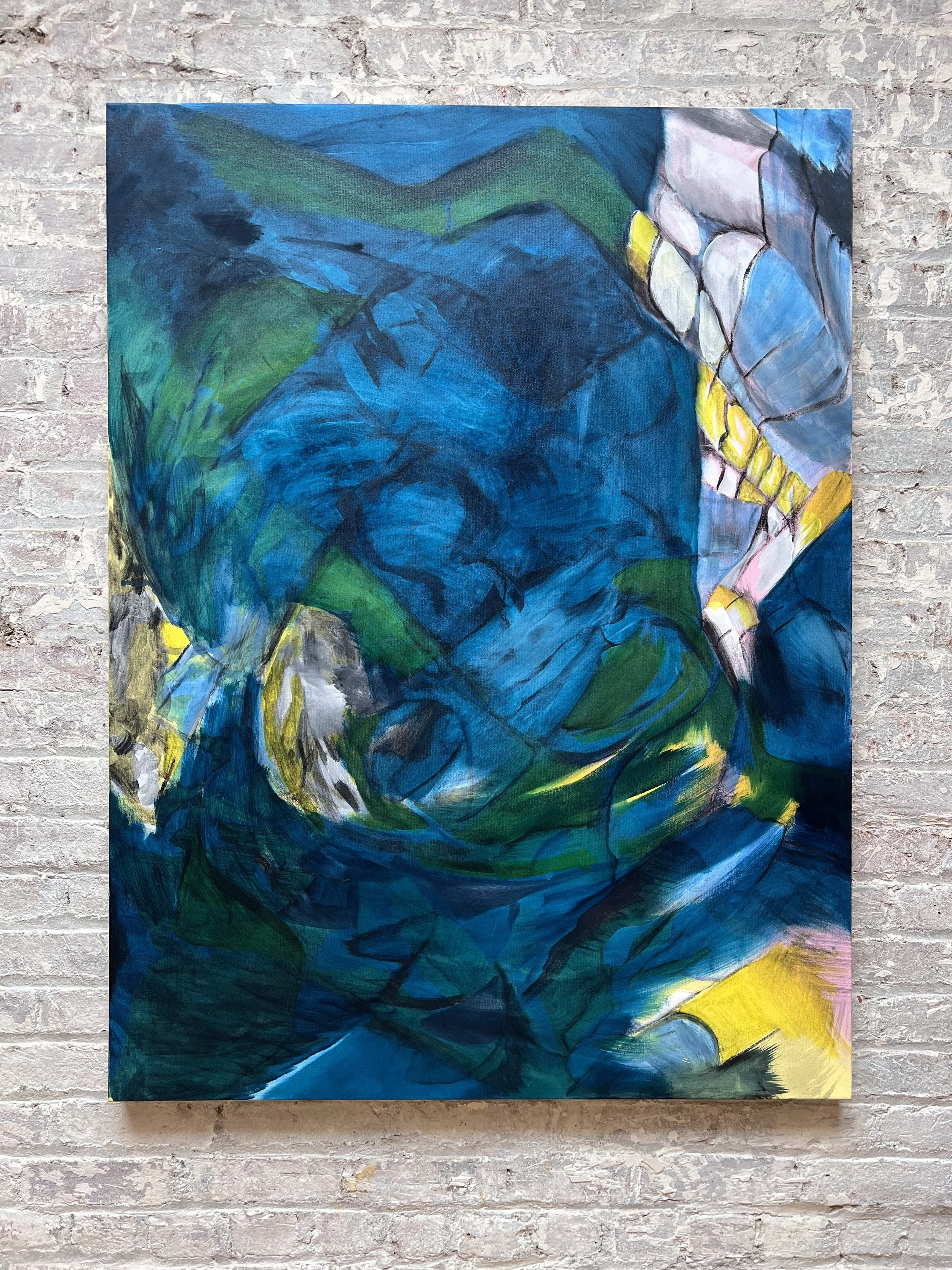 “Sunrise Cave”, Acrylic Ink and Oil on Canvas, 2023, 48” x 36”